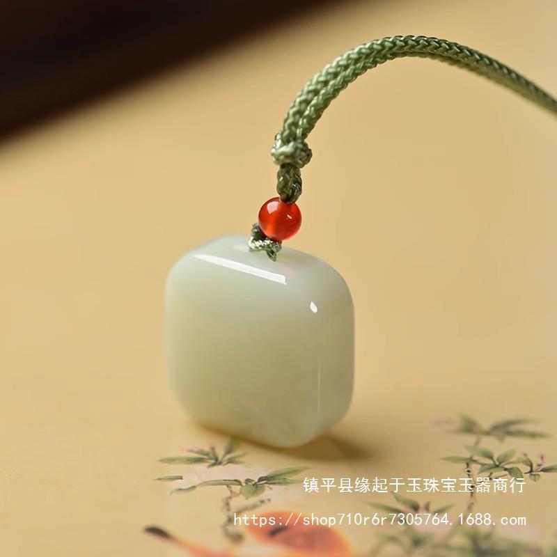 天然和田玉小方糖無事ブランドペンダント玉ストラップシンプル無事ブランド鎖鎖アクセサリー女性プレゼント