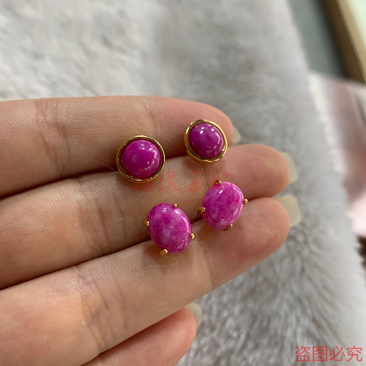 新しい天然ジュラ翡翠桃の花翡翠ビーズイヤリングピンク翡翠イヤリング翡翠イヤリング翡翠イヤリング