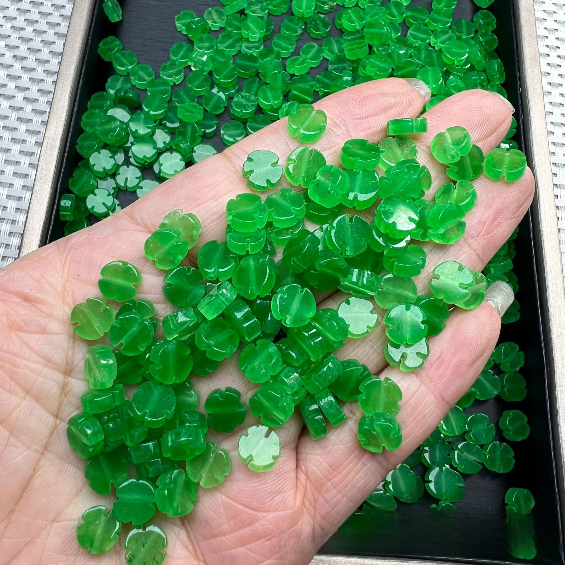 ルースビーズアクセサリーマレーシア翡翠ドライグリーン四つ葉のクローバークロスフラワージュエリーブレスレットネックレスアクセサリーグリーンルースビーズ