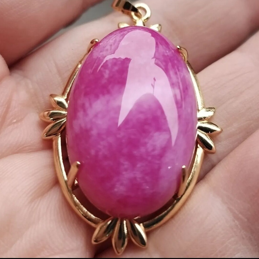 天然シュジライ 大型ローズゴールド象嵌エッグペンダント 南アフリカシュジライト 桜ピンクペンダント 送料無料