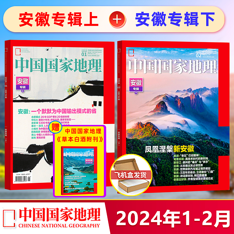 現物中国国家地理雑誌2024年1-2月安徽アルバム上下に草本白酒を贈呈しました。