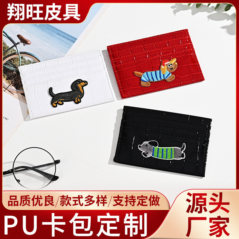 ダックスフントクロコダイル柄レザーカードホルダーカスタムPUレザーID小銭入れポータブルストレージ銀行レトロカードホルダー