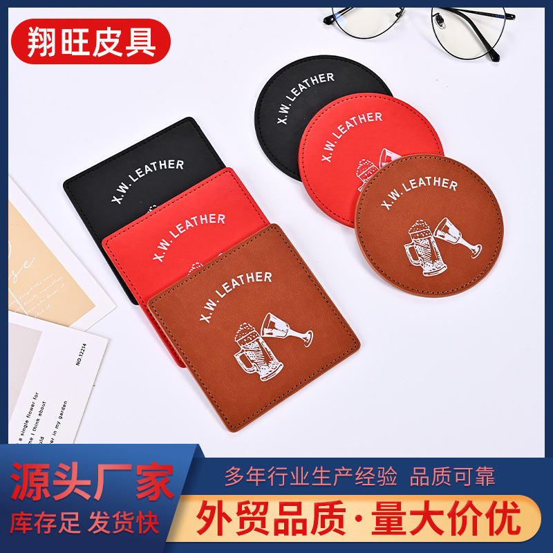 革北欧ins風コースターロゴ断熱円形pu革コーヒー茶プレゼント広告テーブルマット