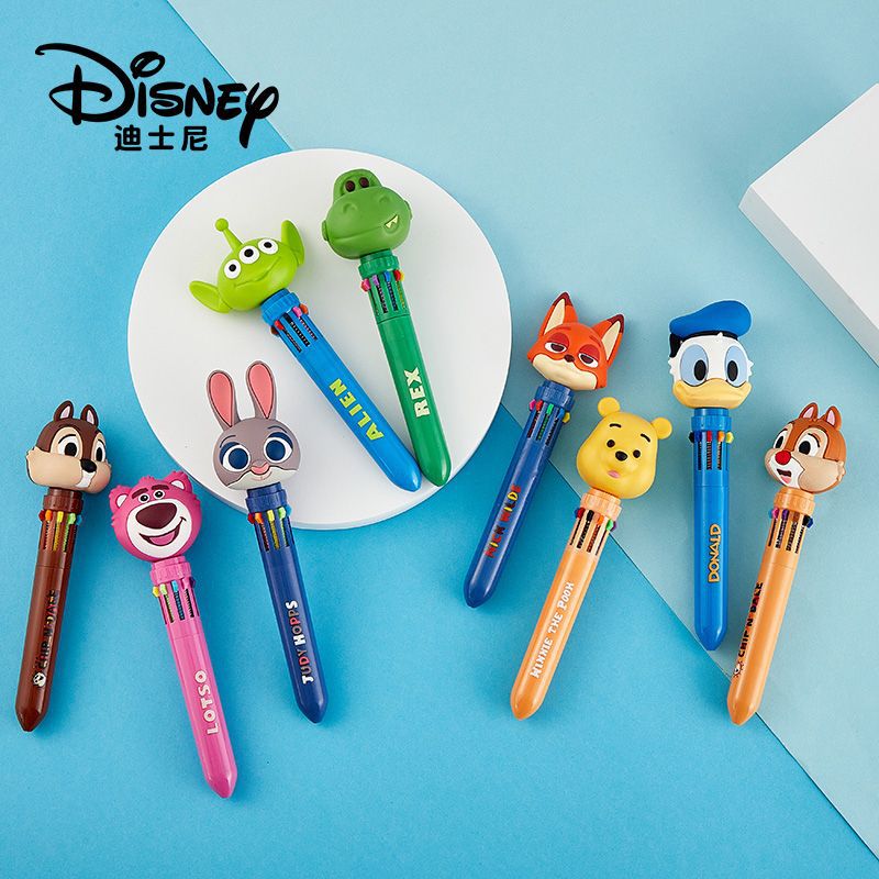 ディズニー正規品 漫画柄10色ボールペン クリエイティブで可愛い学生文具 多色プッシュペン 子供へのプレゼント