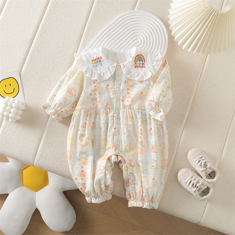 新入生の赤ちゃんの服春秋の新型の連体服2025春のアニメは男女の赤ちゃんの外出の服に登ります。