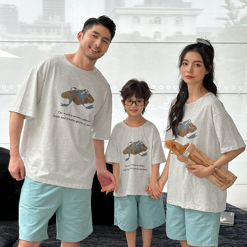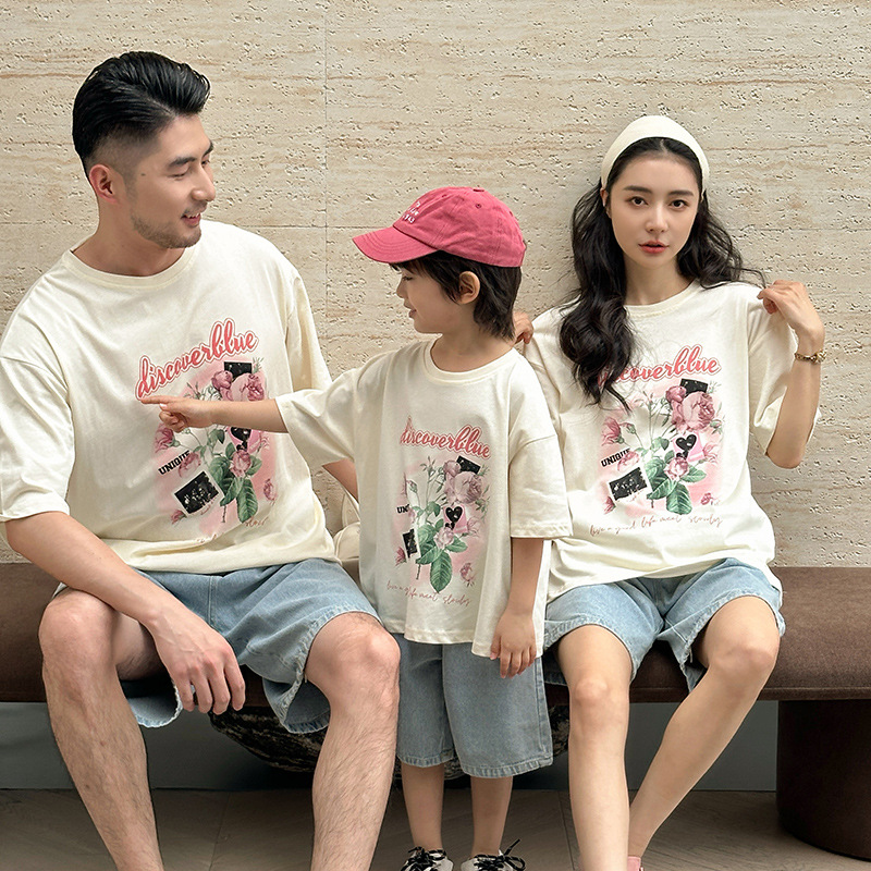 子供服夏の新型アニメプリント半袖綿質tシャツ一家三口母女装ネット赤親子服