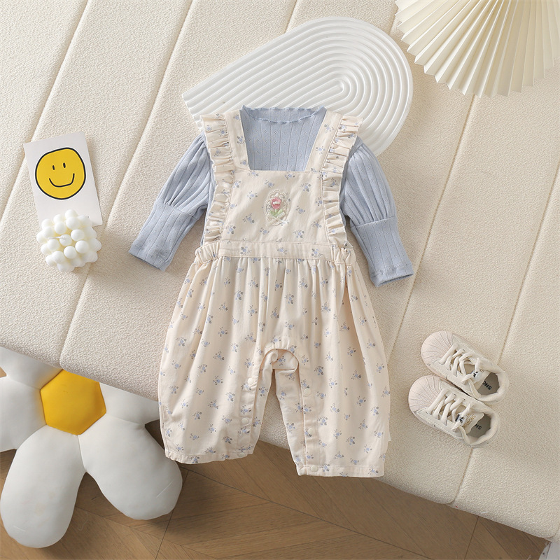 赤ちゃんの春の服の女性の赤ちゃんの背もたれのセット2025春の新型の韓国系の乳幼児の綿の質は服の2つのセットの春を登ります。