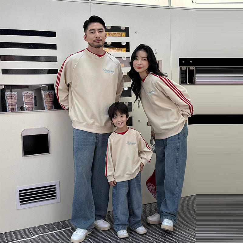 親子服春秋街頭のアメリカ三条のスウェット男のゆったりとしたカジュアルなデザイン感が小さい襟元の上着をつなぎ合わせています。