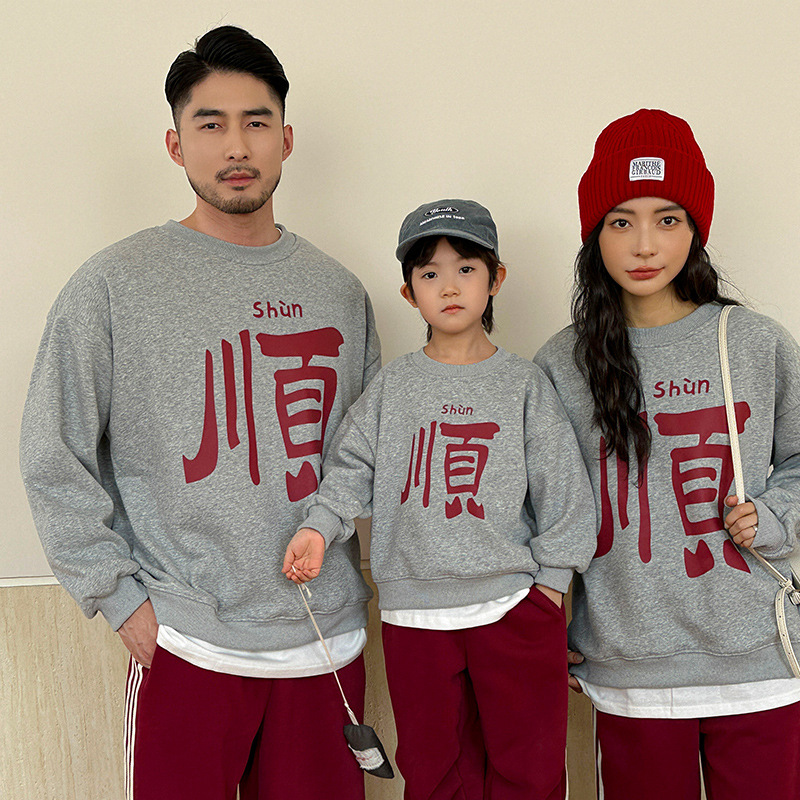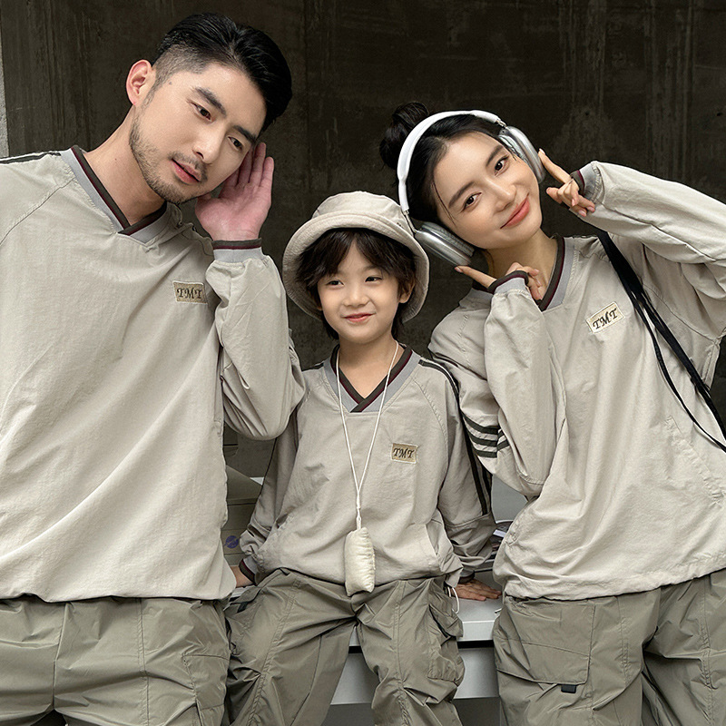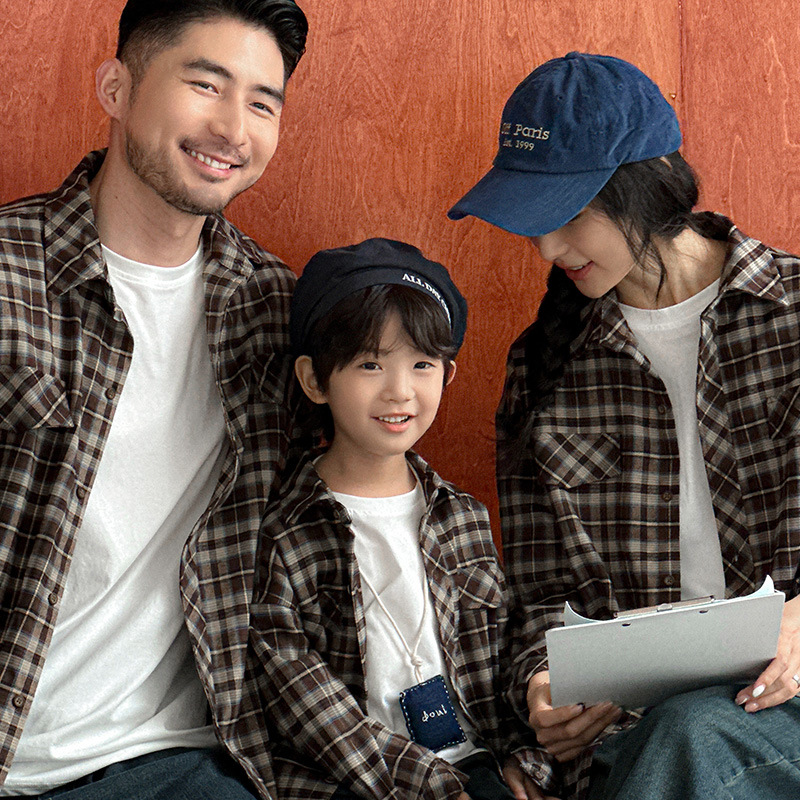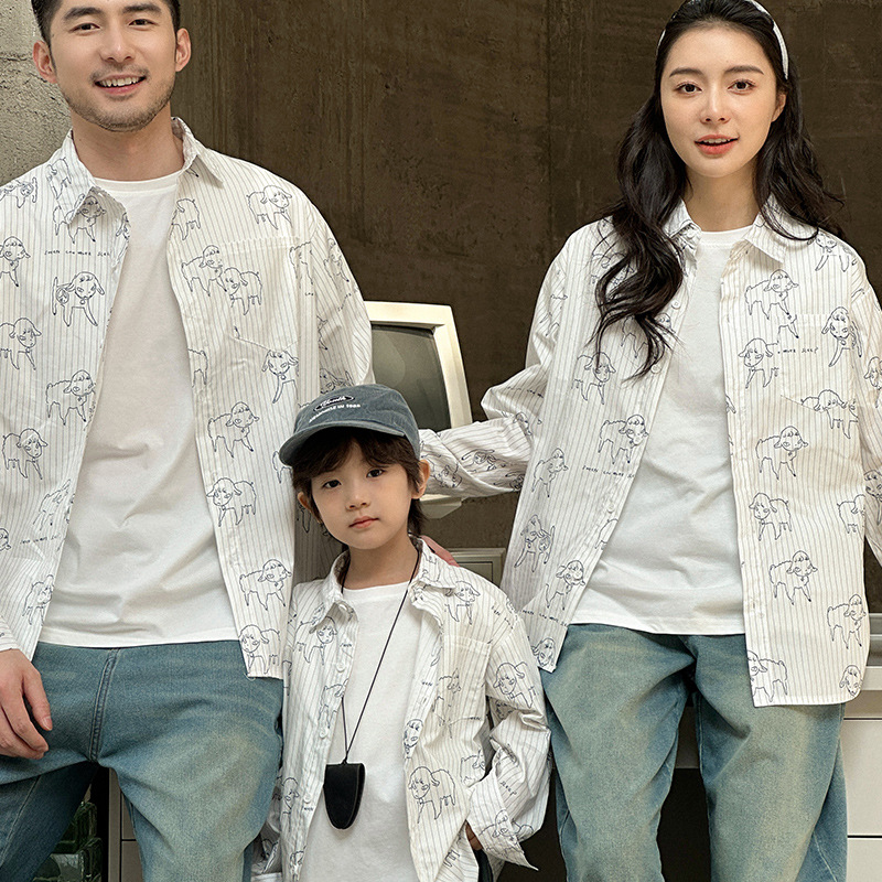 2024新型秋の親子服シャツ一家三四口韓国版洋気怠惰風爆街家庭服上着