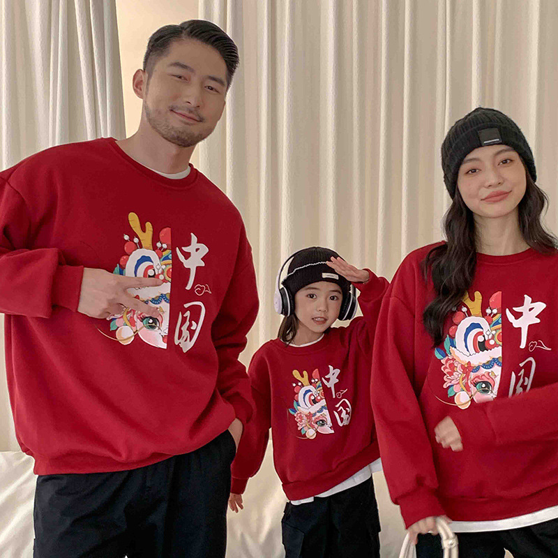 子供の国風の丸首とベルベットの服の親子服の新年服の上着の新中国式の国潮の新年服の母の婦人服