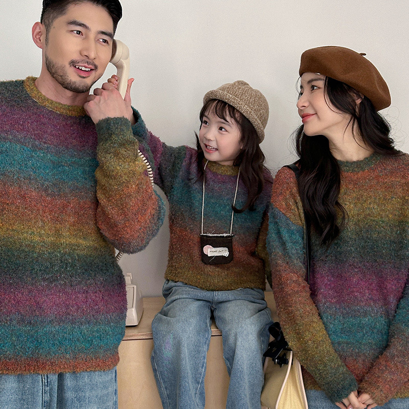 韓国版親子は冬の新作セーターを着ています。