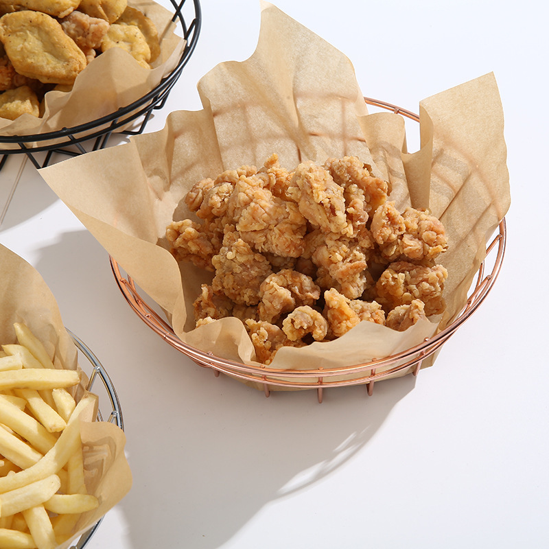 メーカー卸売り長方形ミニフライドバスケット薔薇金色ポテトフレームアメリカ菓子バスケットポテトフライバスケット
