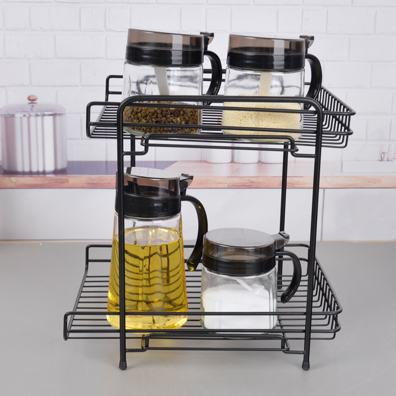 キッチンラック簡易取り外し可能調味料ラック牛革箱入り鉄芸二重キッチン収納棚キッチンラック