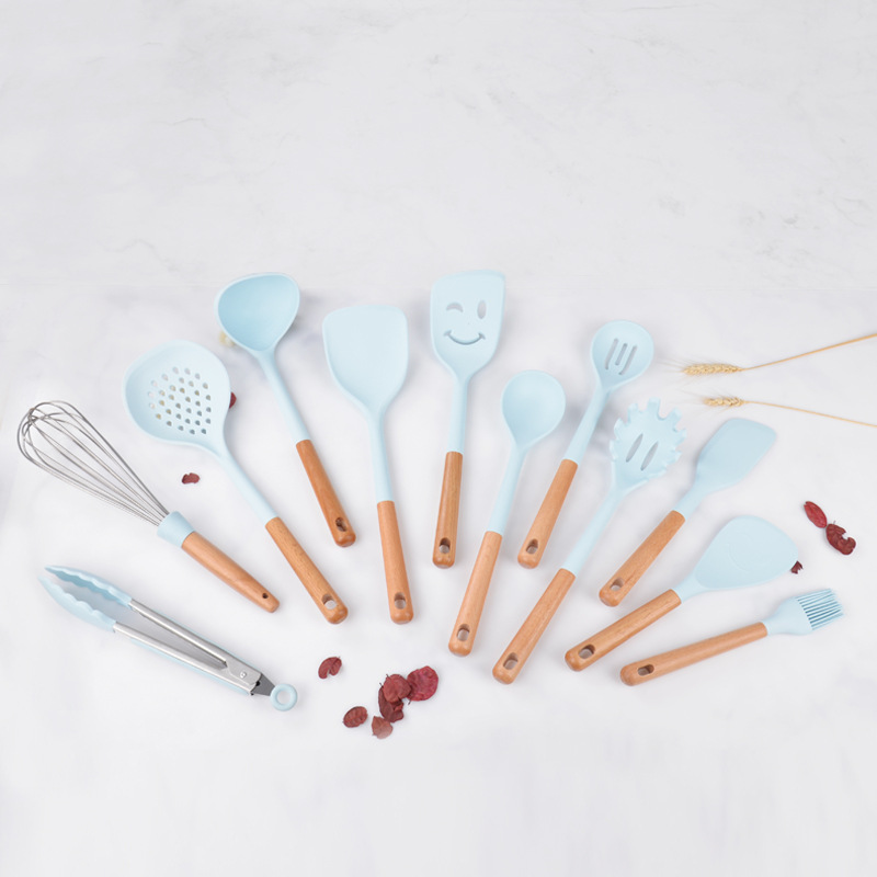 アマゾンシリコン料理道具セットケヤキキッチン料理スプーンシャベル12点セット笑顔シリコン鍋シャベルスプーン