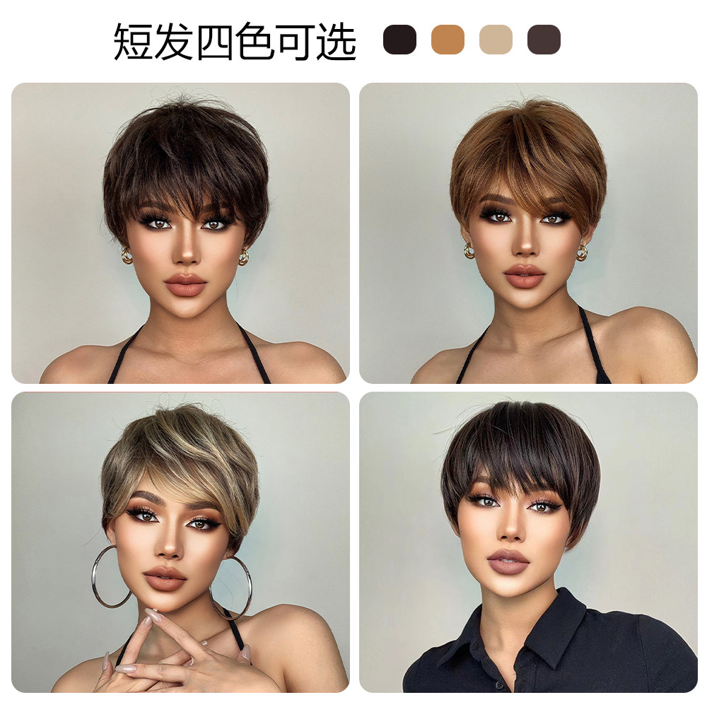 欧米の国境を越えた対外貿易新製品アマゾン輸出の全頭セット前髪グラデーション粉bobo短髪かつら女