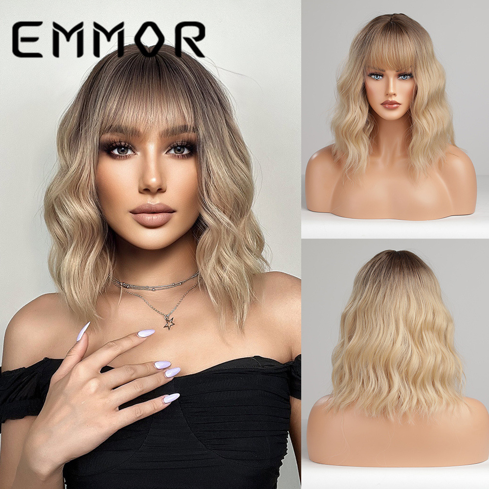 Emmall欧米アマゾンの新型前髪グラデーションbobo頭巻き化繊高温糸かつらカバー