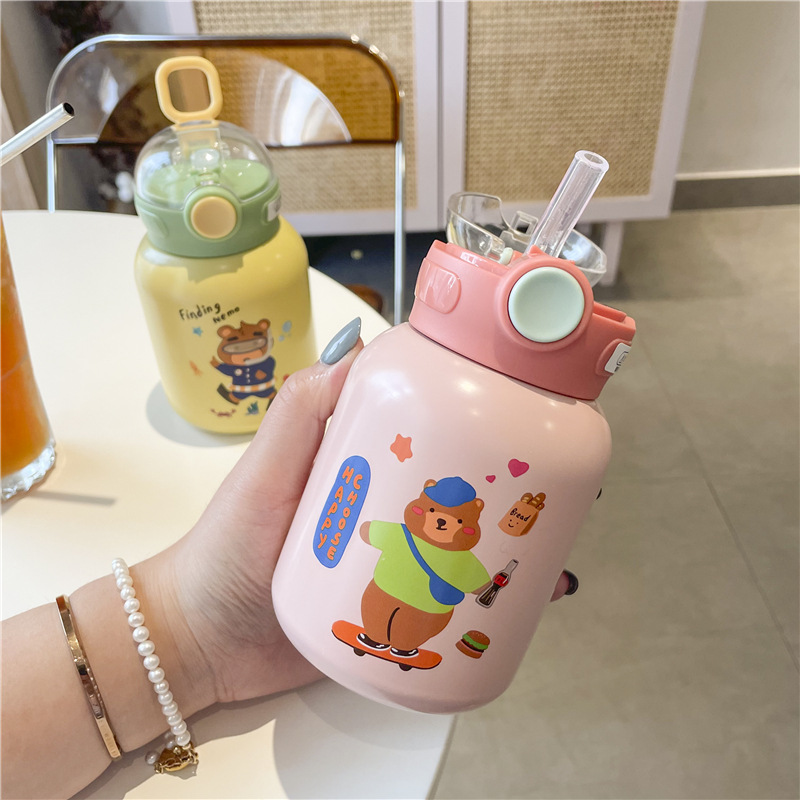 子供かわいいストローカップ304ステンレスシンプル保温カップ男女学生携帯アニメ跳ねるカップ卸売り