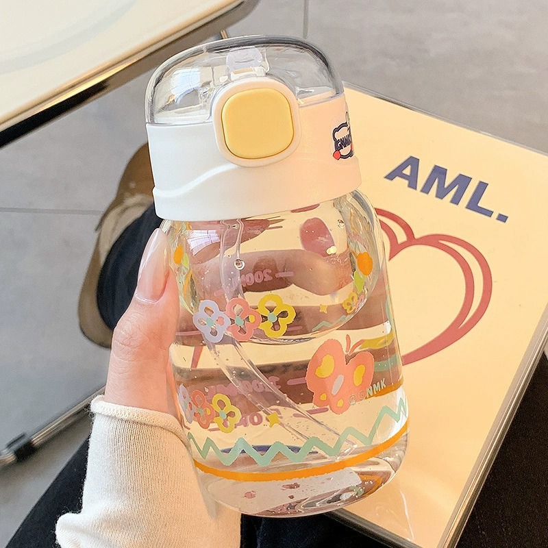 高颜値女子水杯グラス目盛付きプレゼント高ホウ素シリコンカップ学生ストローカップ携帯カップ