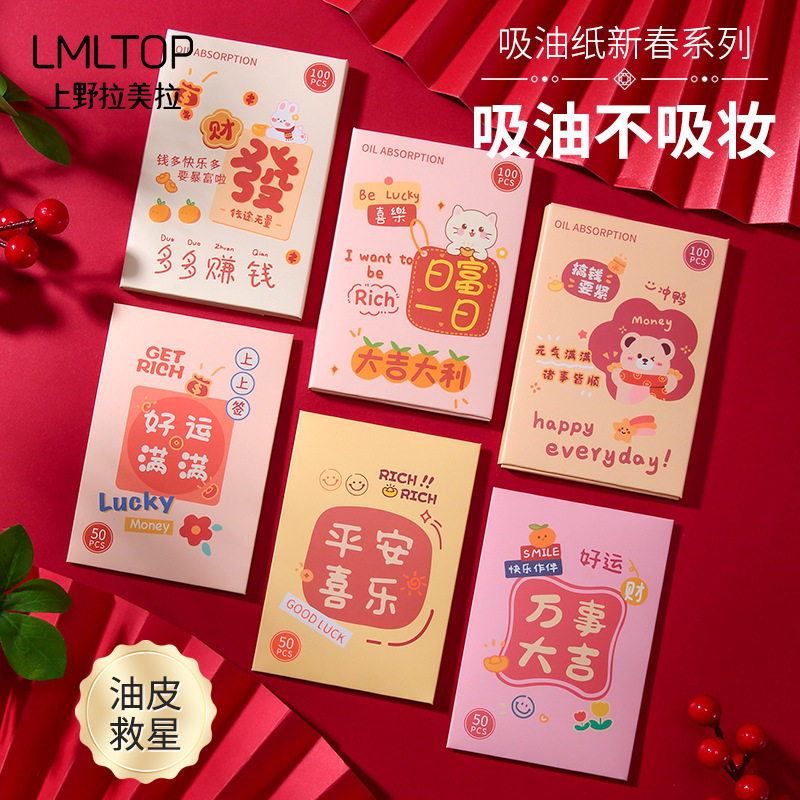 Lmltop新年金100枚の油取り紙の顔はさっぱりしています。