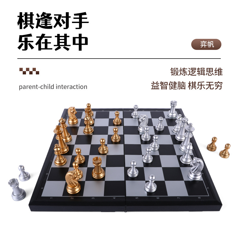 チェスは磁気携帯金銀色の駒と白黒の駒を持っています。
