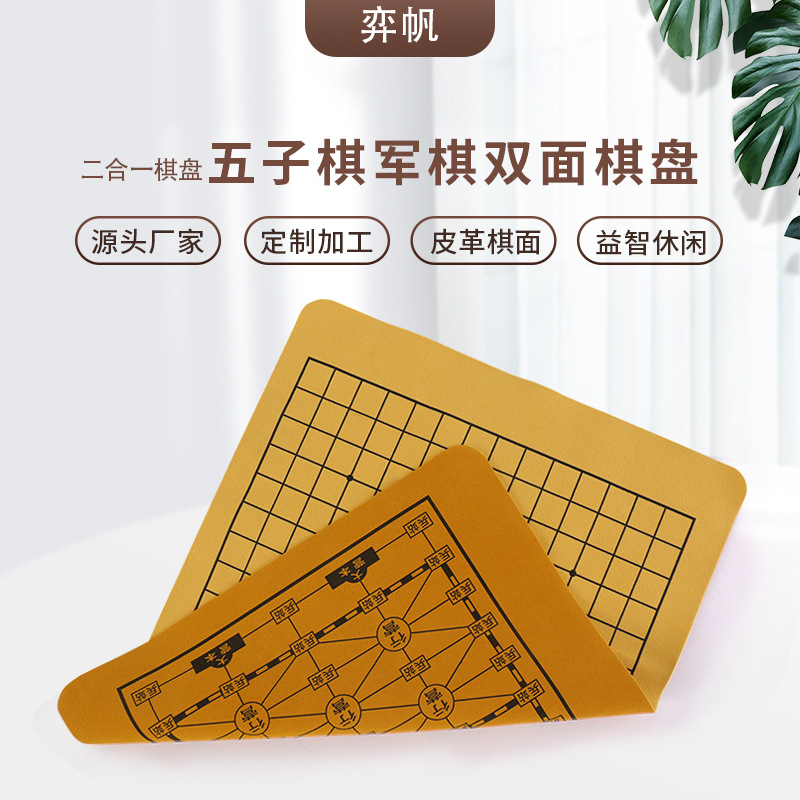 五子棋軍棋二合一両面盤軽量ポータブル15路柔らかい布革ベルベット棋面に駒がない