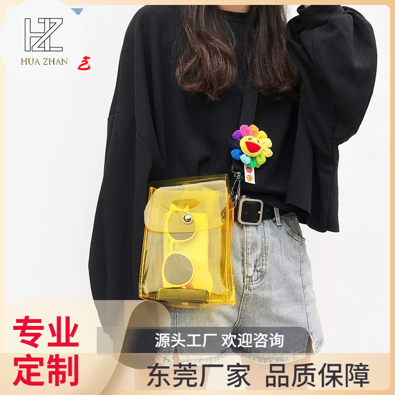 新しい半透pvc女性バッグシングル肩斜めショルダーバッグ百合ゼリー透明ハンドバッグはロゴを印刷できます。