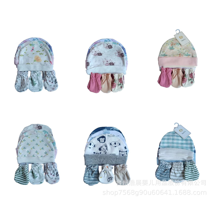 ベビー帽子手袋セットプリントのベビー帽子ベビー袖カバーが快適で可愛いです。