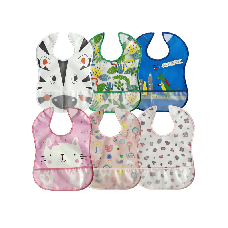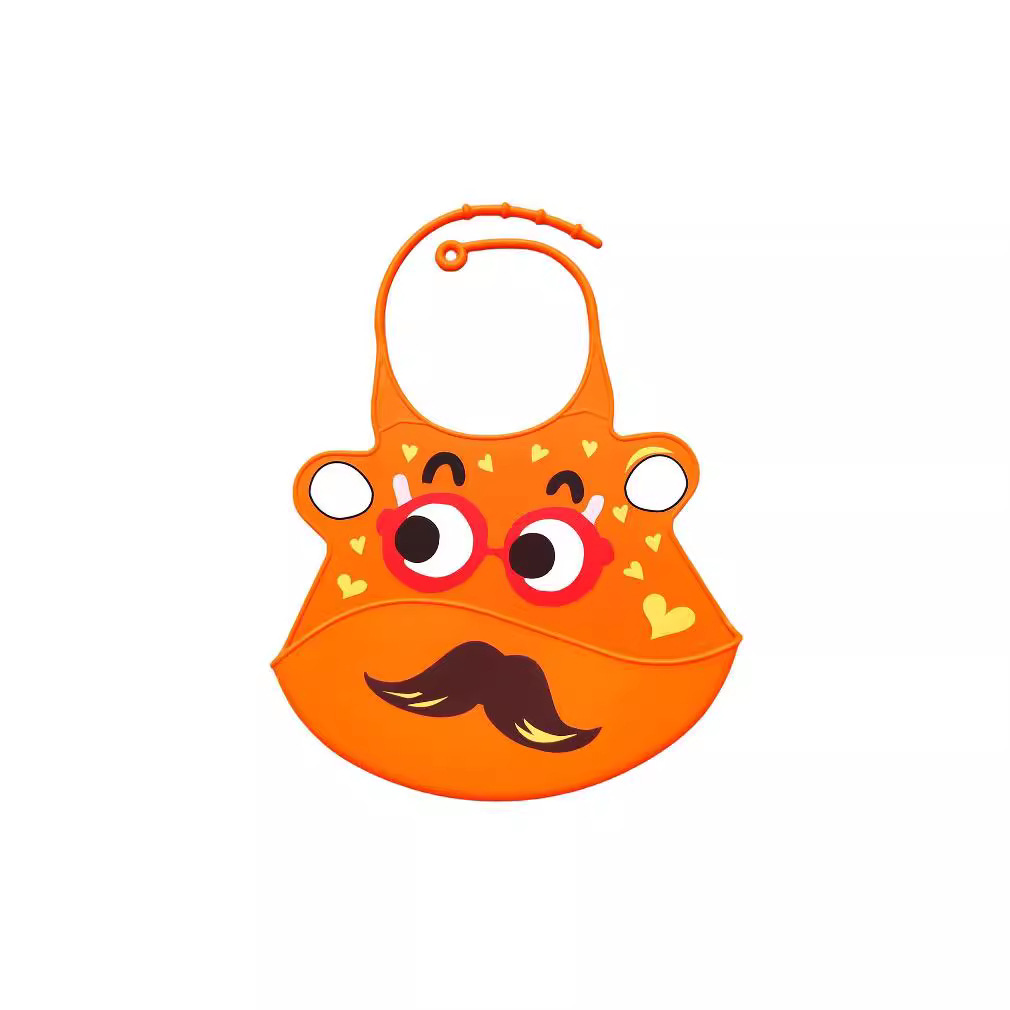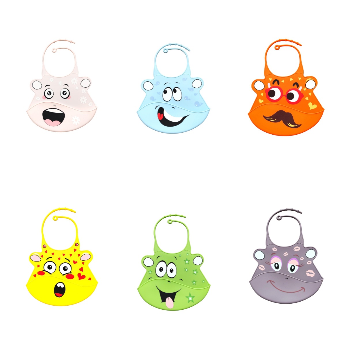 シリコン漫画かわいいよだれかけ赤ちゃん食事よだれかけポケットシリコンゴムよだれかけシングルクリップ付き