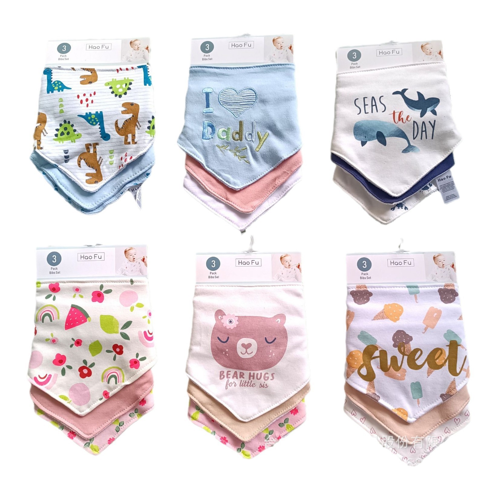 乳幼児の漫画の三角タオルのよだれのタオルは口の綿の質の男の子の宝の女の宝の金の3条の1つの服を囲みます。