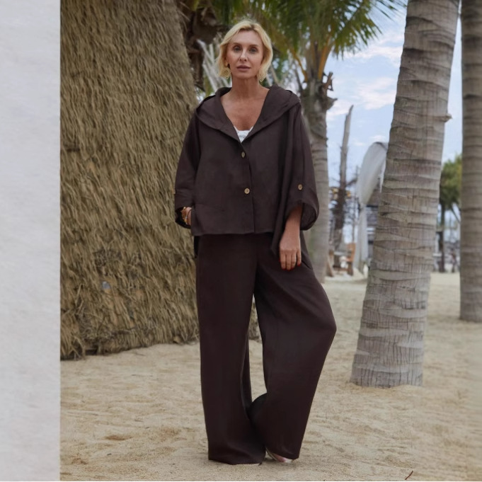 ヨーロッパとアメリカのクロスボーダー 2025 Amazon 独立ステーション夏の女性のリネン フード付きスーツ