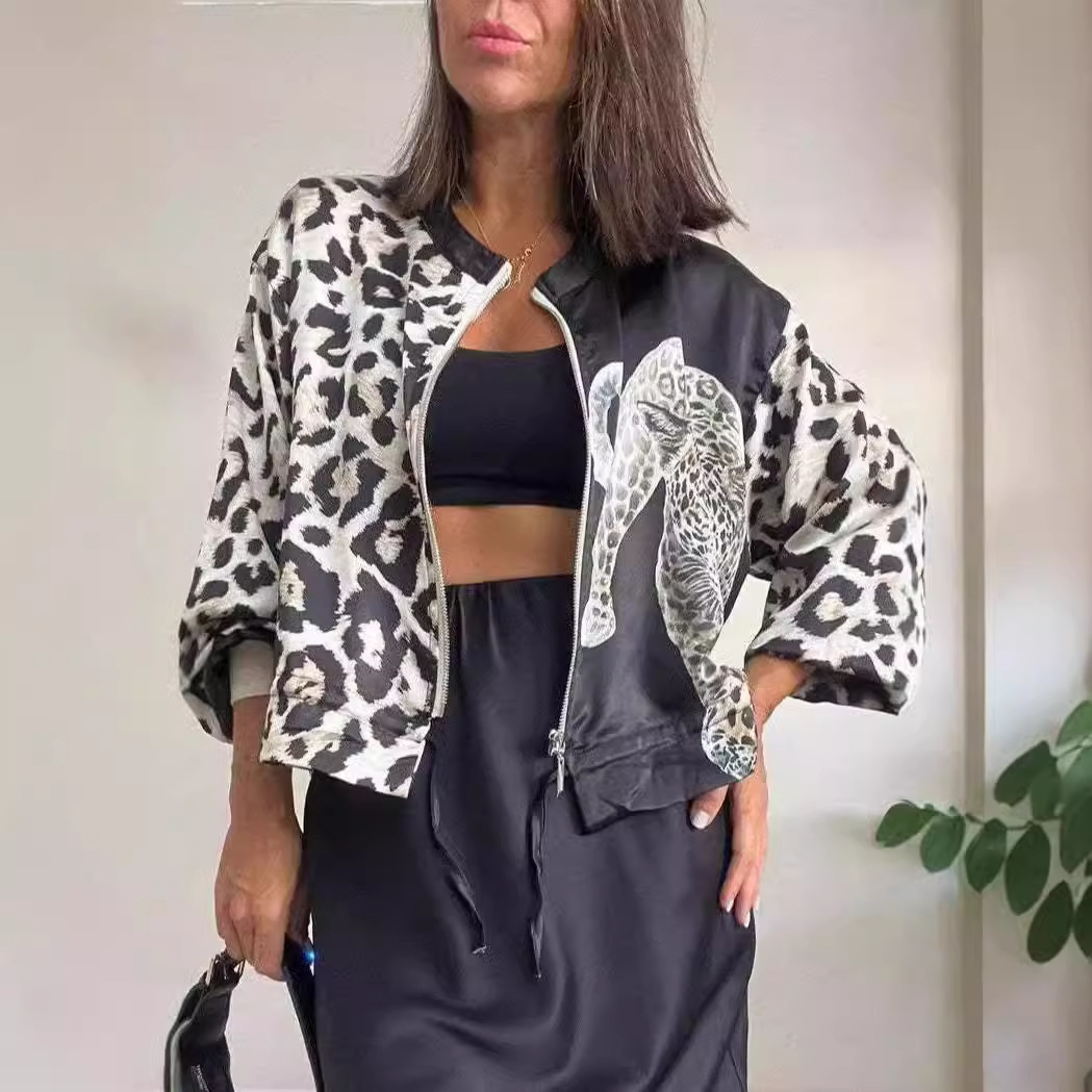 2024アマゾン独立駅の新型クロスボーダー婦人服秋コート欧米ファッション豹柄カジュアルジッパージャケット
