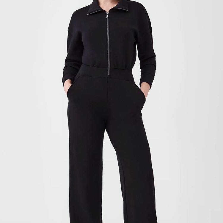 欧米のクロスボーダー2023独立駅の新型長袖の広い足の連体のズボンの連体の服のファスナーは襟のガードルのスーツの女性をめくります。