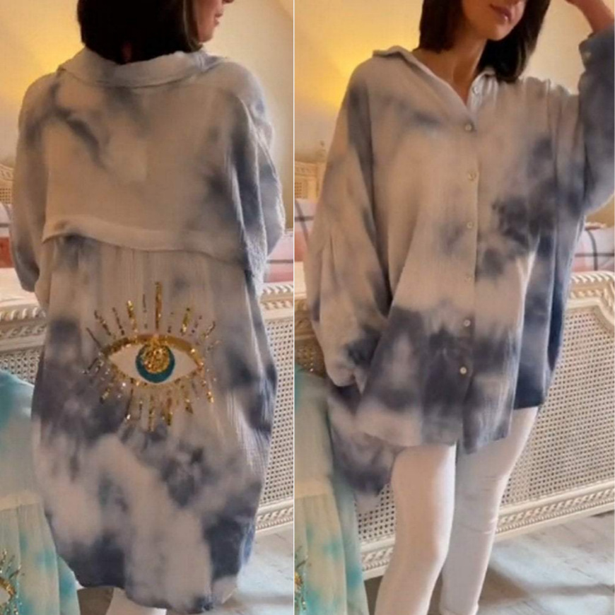 アマゾン独立駅2024欧米の国境を越えて爆発した邪悪な目のプリントの純色のゆったりした大きいサイズのワンピース