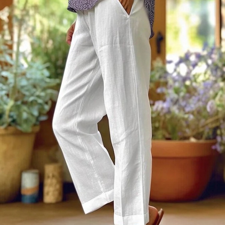 2024年新型外国貿易クロスボーダーアマゾンwish綿麻レディースゆるいシンプルファッションカジュアルパンツストレート長