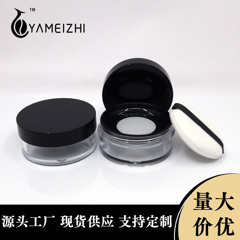 現物包装材黒色蜜粉分注箱携帯弾性網パフと鏡空箱カバー8gグラム散粉箱