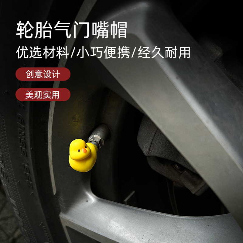 バルブキャップ漫画創意的な小黄鴨は車のタイヤのシリコンバルブキャップをつまんでいます。