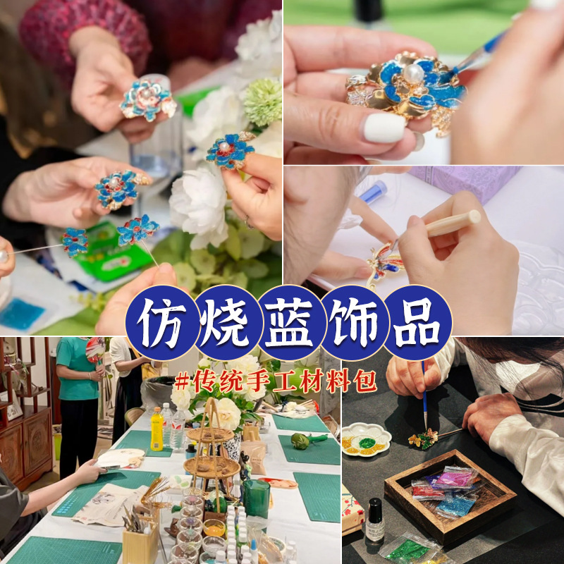 模造ブルー手作り素材パッケージヘアピンイヤリングリングネックレス無形文化遺産 DIY チームビルディングギフト古代スタイル中国風