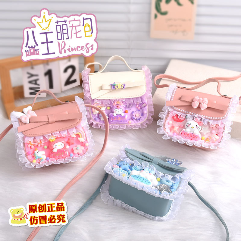 新商品の子供用クリームゴムのハンドバッグ手作りの斜め掛けの材料はネットの赤い女の子のかわいい王女の萌えのペットの包みを包みます。