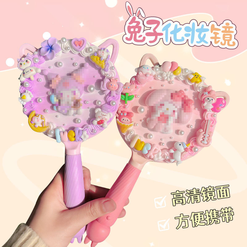 ウサギ化粧鏡手持ち鏡diy材料バッグ手作りかわいいクリーム小鏡手作り団建プレゼント