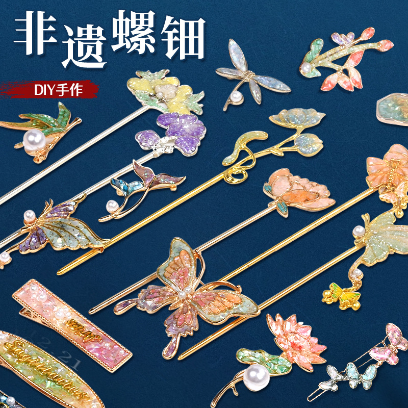 無形文化遺産手作り DIY 材料パッケージ螺鈿ブローチヘアピンヘアピン貝殻の破片ポイントクリーンチームビルディングイベントギフト