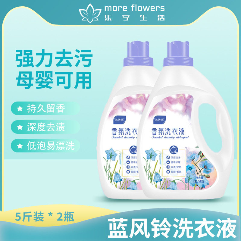 大きな樽の青い風鈴の香りの洗濯洗剤、香りが長持ち、ベビーホーム 5 斤、2 ボトル、滑らかで汚れを除去