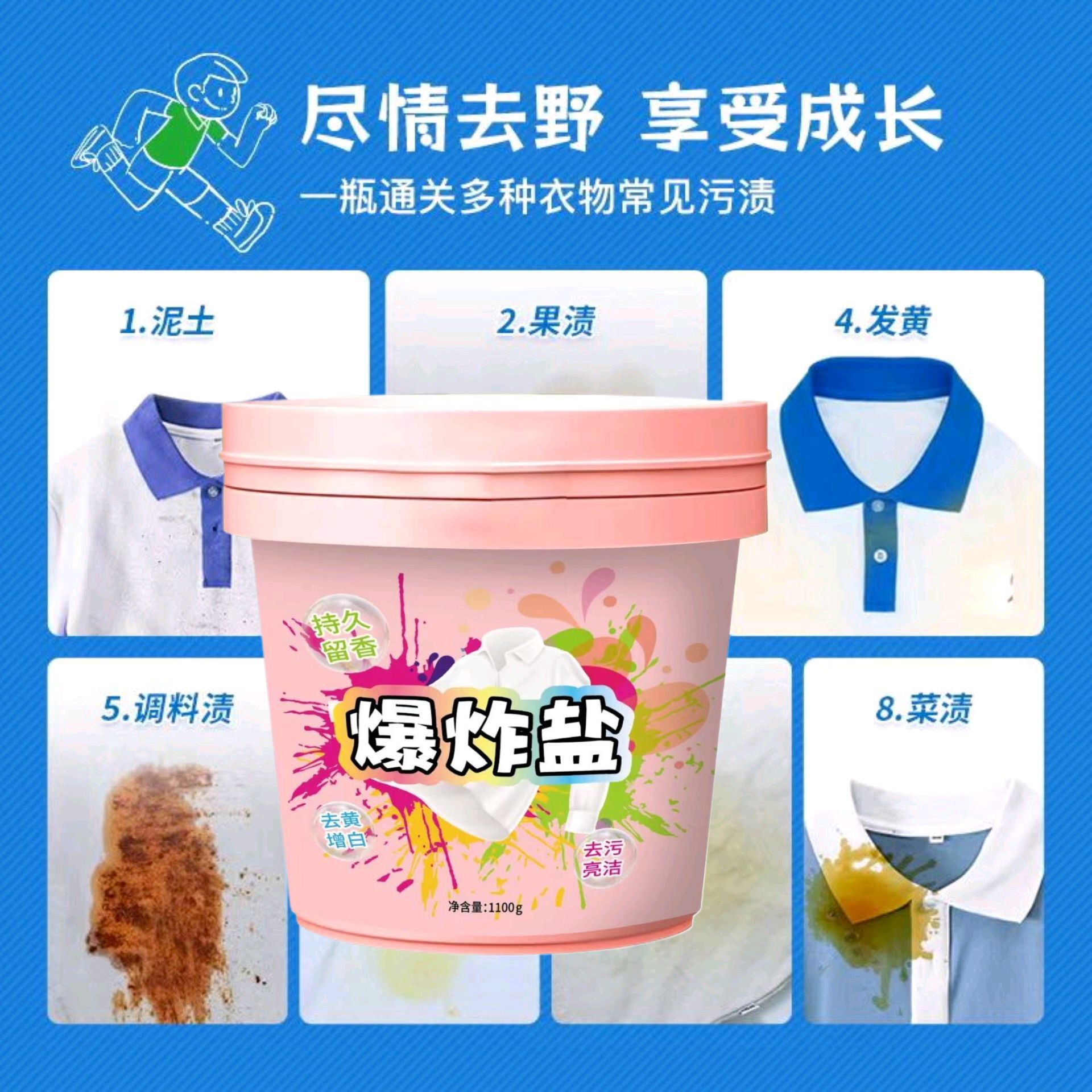 Douyinと同じスタイルの爆発性塩白い服の汚れ落としバケツ花の香りの洗濯汚れ落としの香りで黄ばみを除去し、美白します