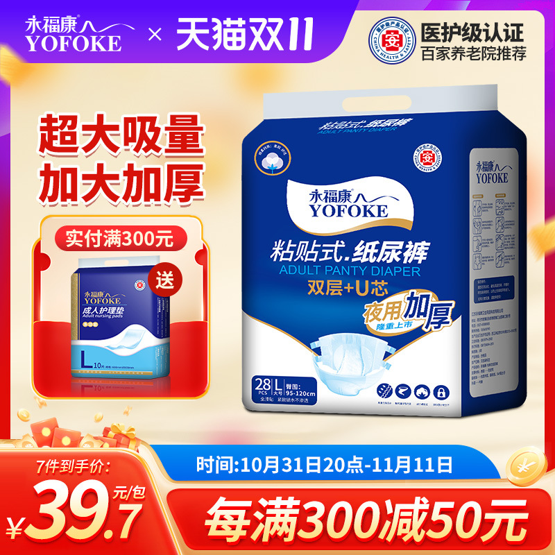 Yongfukang 高齢者用大人用おむつ、厚手おむつ、男性用と女性用の夜用おむつ、ノンプルアップパンツ