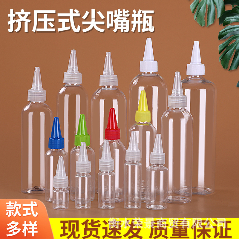 尖口ボトル透明PETプラスチックメーカー卸売50ml100ml接着剤ローション顔料水剤分注用スクイーズボトル