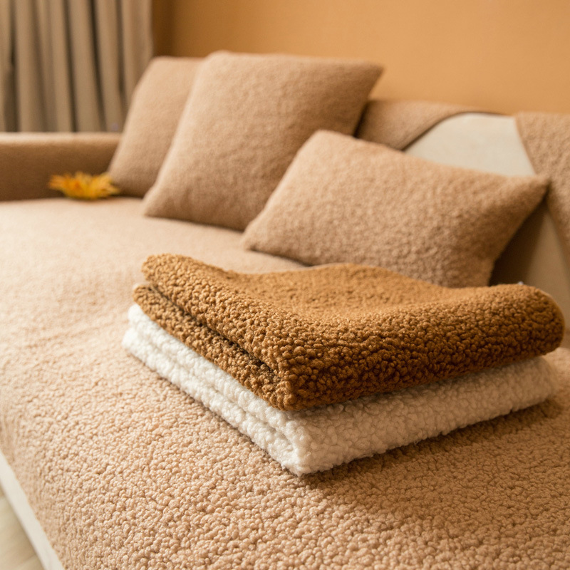 冬のぬいぐるみソファーマット滑り止め北欧シンプル座布団四季通用厚い布芸羊小毛カバータオル