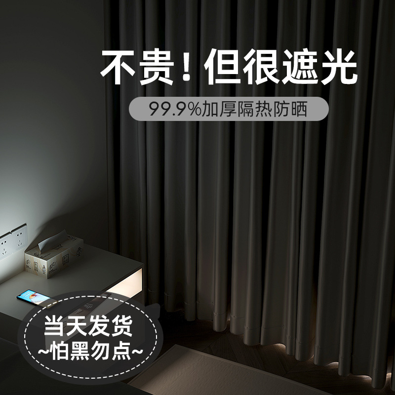 全遮光カーテン寝室2024新型断熱日焼け止め遮光生地フック式軽贅沢現代シンプル