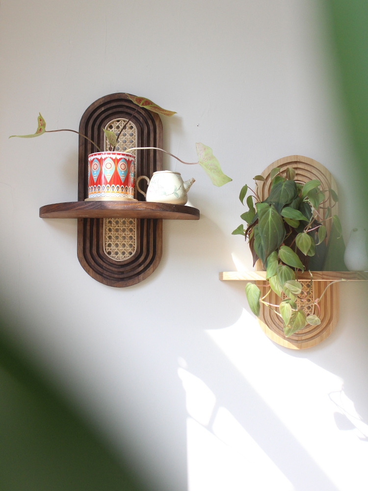 中古寂風壁装飾棚日本式天然インドネシア藤編み壁掛け実木花棚背景装飾民宿