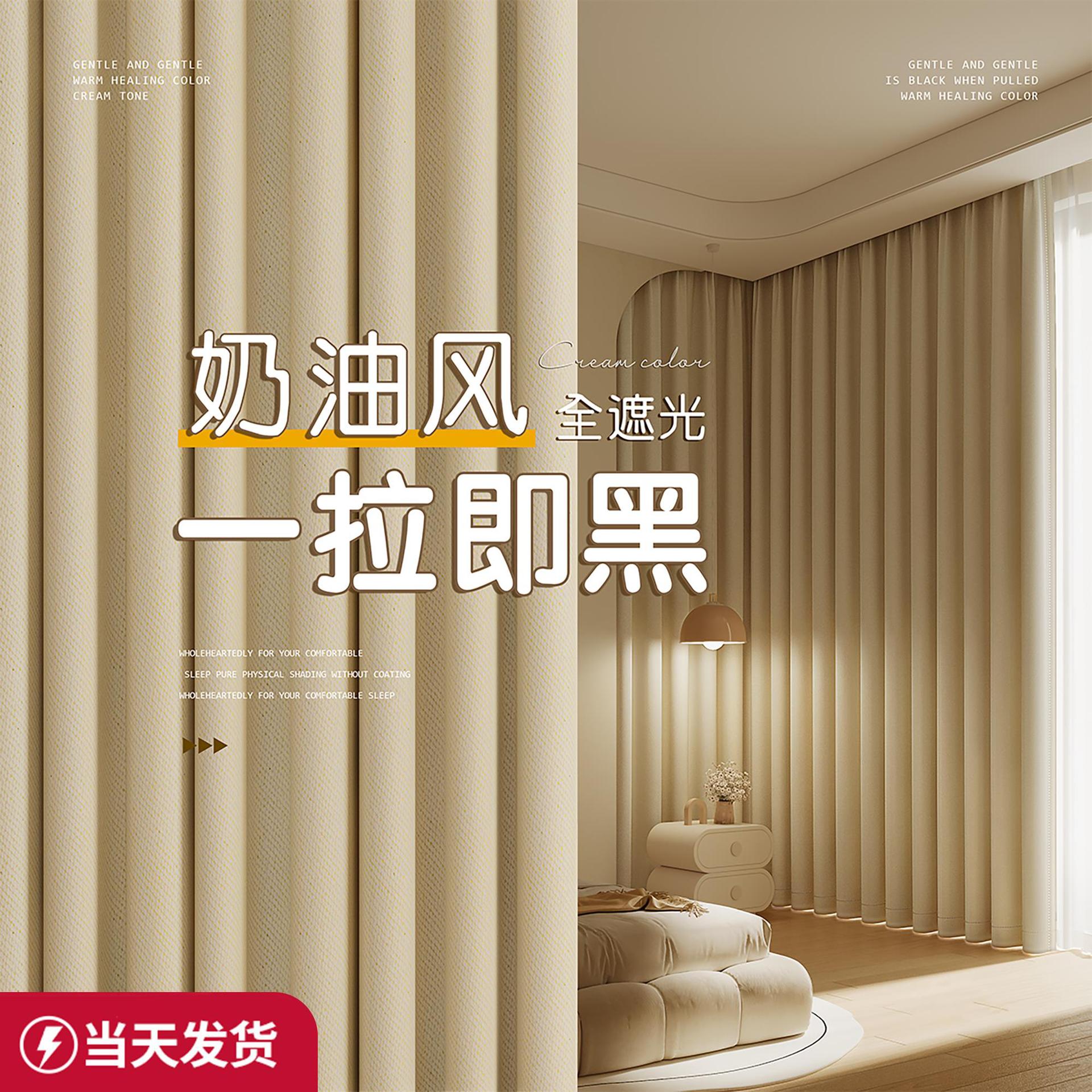 寝室全遮光カーテン2024新型軽贅沢現代シンプルな窓リビングルームのベランダに日焼け止めの日除け布を厚くする