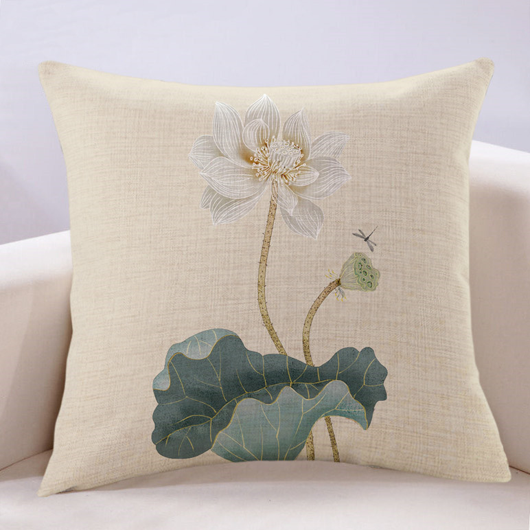新中国式ソファー抱き枕ハスの花ベージュ色花卉クッション背もたれ中国風客間背もたれ枕カバーは芯を含んでいる