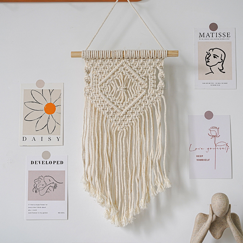 タペストリーins風北欧風装飾画レトロイメージクリエイティブプリント綿麻フリンジ編み民宿画